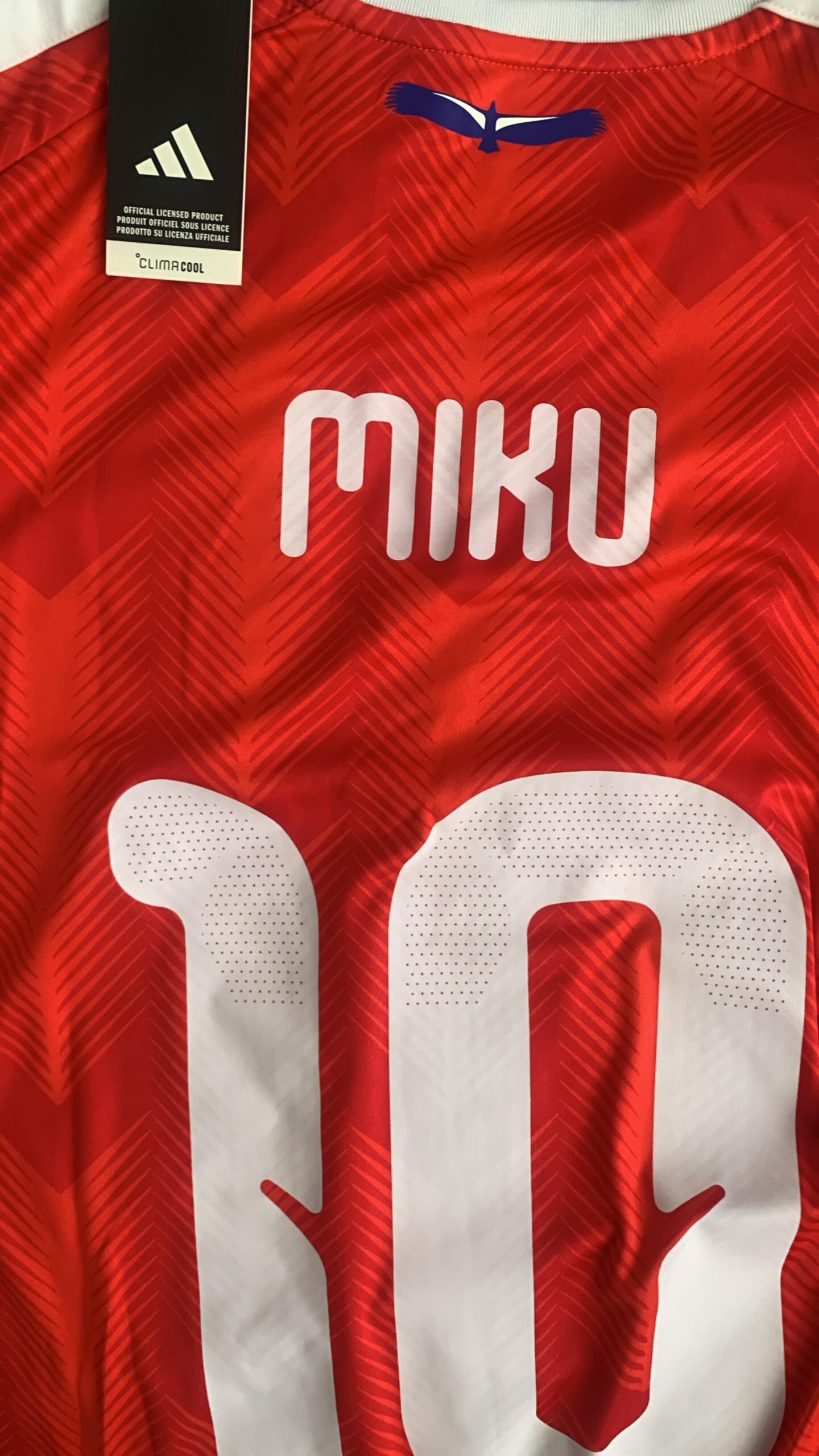 Los presentes entregados a Miku fueron la camiseta de la seleccion chilena, un galvano y bombones de chocolate.